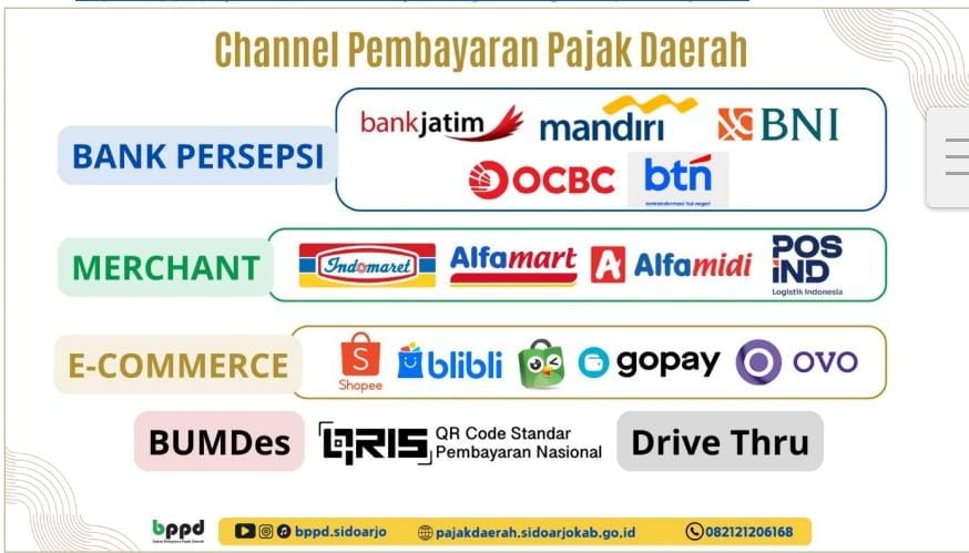 d. Selain itu, pembayaran pajak juga dapat menggunakan layanan QRIS maupun Virtual Account yang dapat diakses pada tautan berikut: https://sppt.pajakdaerah.sidoarjokab.go.id/tagihan/pembayaran.